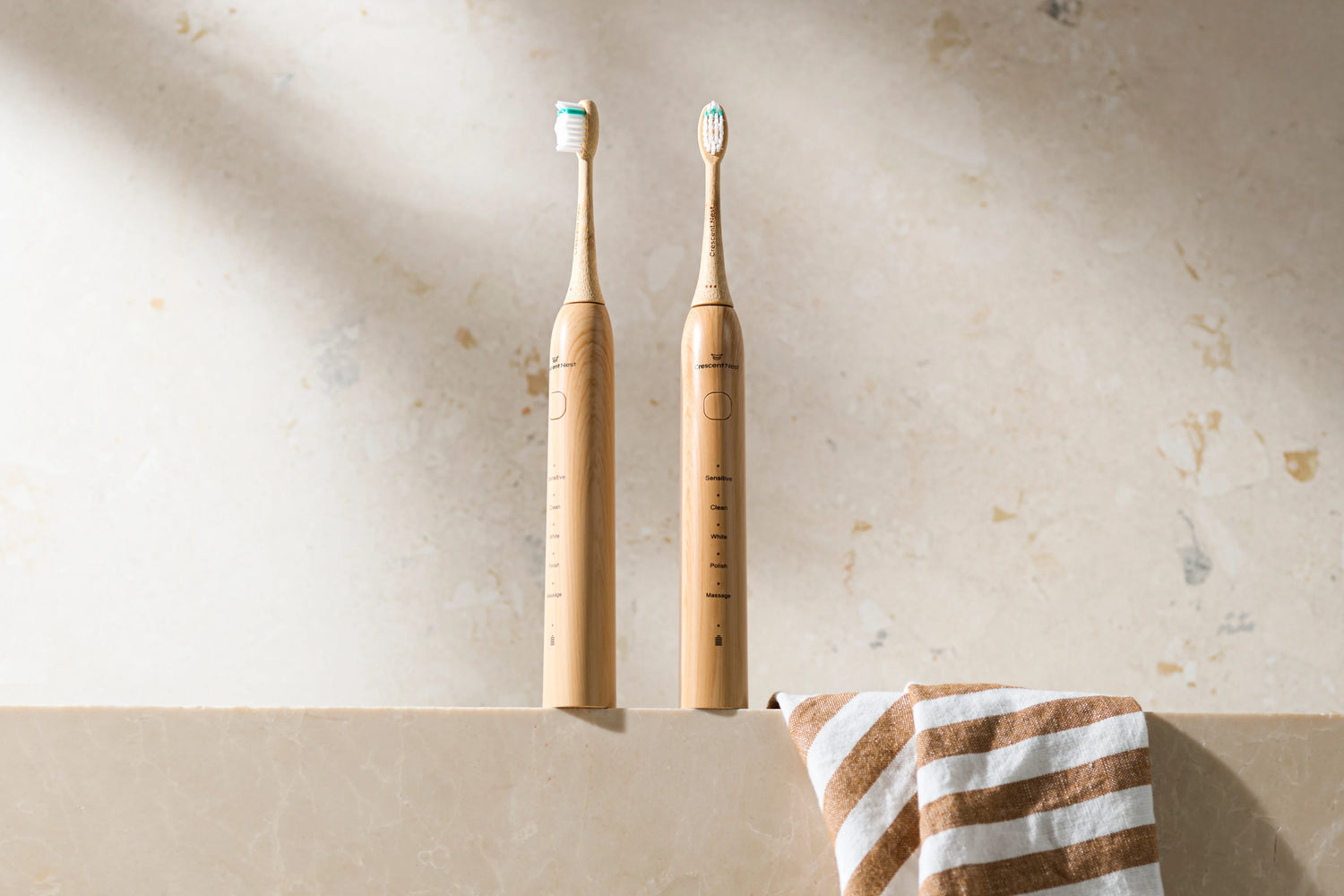 A sleek, sustainable sonic toothbrush with a minimalist design that looks effortlessly elegant in any bathroom.